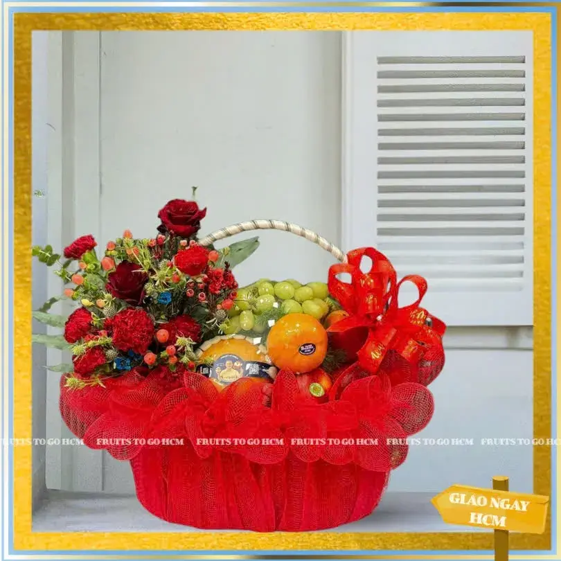 Giỏ trái cây nhập khẩu có hoa tươi, thiết kế sang trọng – giao nhanh HCM trong 1–2 giờ. Trái cây tươi mới mỗi ngày, quà tặng ý nghĩa cho mọi dịp: chúc mừng, thăm sức khỏe, biếu sếp, đối tác. Đặt giỏ trái cây cao cấp ngay!